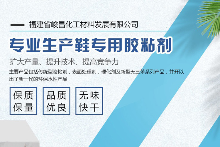 福建省峻昌化工材料發(fā)展有限公司總部設(shè)在中國(guó)鞋鄉(xiāng)——晉江。為更好、更方便服務(wù)廣大客戶(hù),我司在廣東江門(mén)及福建均設(shè)有先進(jìn)的PU膠生產(chǎn)基地,歡迎廣大同行前來(lái)我司灌裝或批發(fā)銷(xiāo)售。公司是一家中外合資,面向亞太地區(qū)從事研究,生產(chǎn)銷(xiāo)售鞋用粘膠10多年的專(zhuān)業(yè)公司。從國(guó)外引進(jìn)生產(chǎn)能力為數(shù)萬(wàn)噸的全套先進(jìn)生產(chǎn),檢驗(yàn)設(shè)備,與德國(guó)Bayer,日本DENKA及美國(guó),西班牙等其它海外公司有著密切的原材料及技術(shù)合作。公司主要產(chǎn)品包括傳統(tǒng)型膠粘劑,表面處理劑,硬化劑及新型無(wú)三苯系列產(chǎn)品,并開(kāi)以出了新一代的環(huán)保水性產(chǎn)品。供應(yīng)國(guó)內(nèi)外鞋業(yè),手提箱包及建筑工程單位使用。公司始終保持產(chǎn)品的良好品質(zhì)及專(zhuān)業(yè)特性,并倍受廣大客戶(hù)好評(píng)。